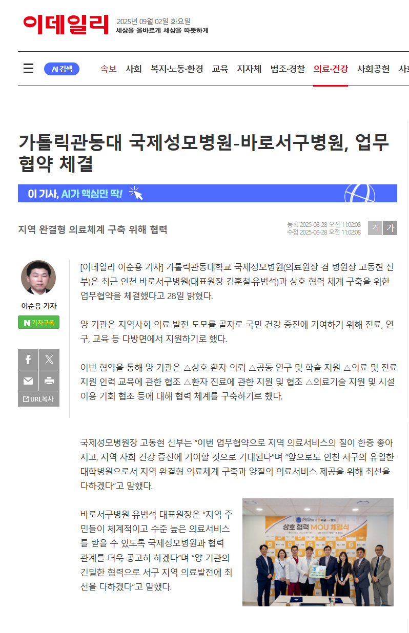 [À̵¥Àϸ®] °¡Å縯°üµ¿´ë ±¹Á¦¼º¸ðº´¿ø-¹Ù·Î¼±¸º´¿ø, ¾÷¹«Çù¾à ü°á