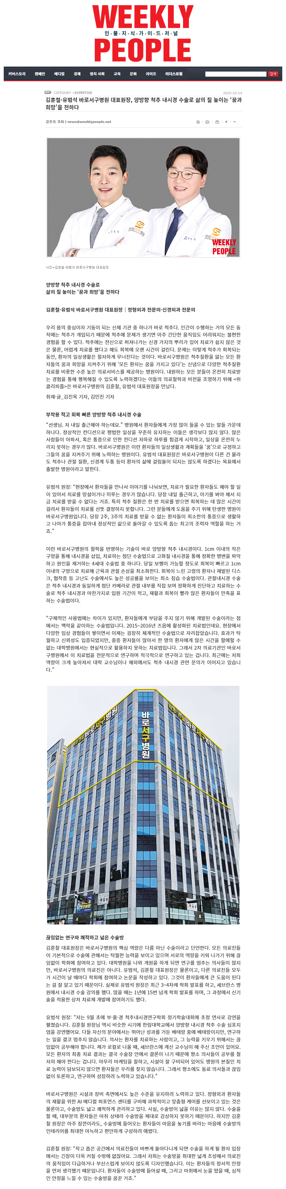 [À§Å¬¸®ÇÇÇÃ]±èÈÆÃ¶¡¤À¯¹ü¼® ¹Ù·Î¼±¸º´¿ø ´ëÇ¥¿øÀå, ¾ç¹æÇâ ôÃß ³»½Ã°æ ¼ö¼ú·Î »îÀÇ Áú ³ôÀÌ´Â ¡®²Þ°ú Èñ¸Á¡¯À» ÀüÇÏ´Ù