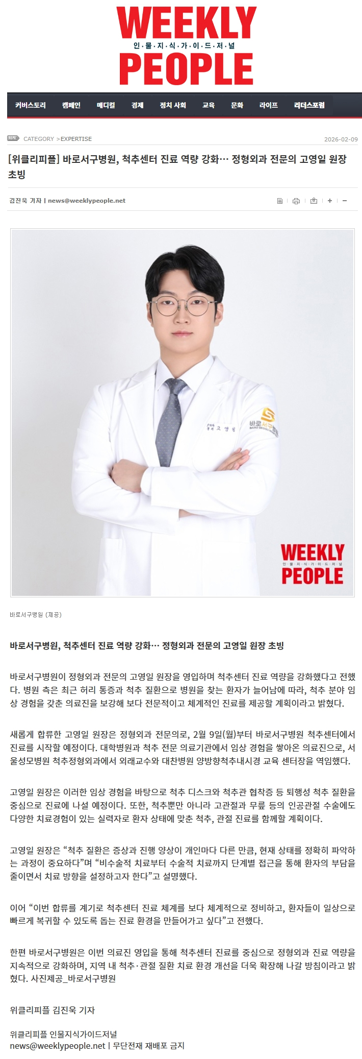 [À§Å¬¸®ÇÇÇÃ] ¹Ù·Î¼±¸º´¿ø, ôÃß¼¾ÅÍ Áø·á ¿ª·® °È¡¦ Á¤Çü¿Ü°ú Àü¹®ÀÇ °í¿µÀÏ ¿øÀå Ãʺù