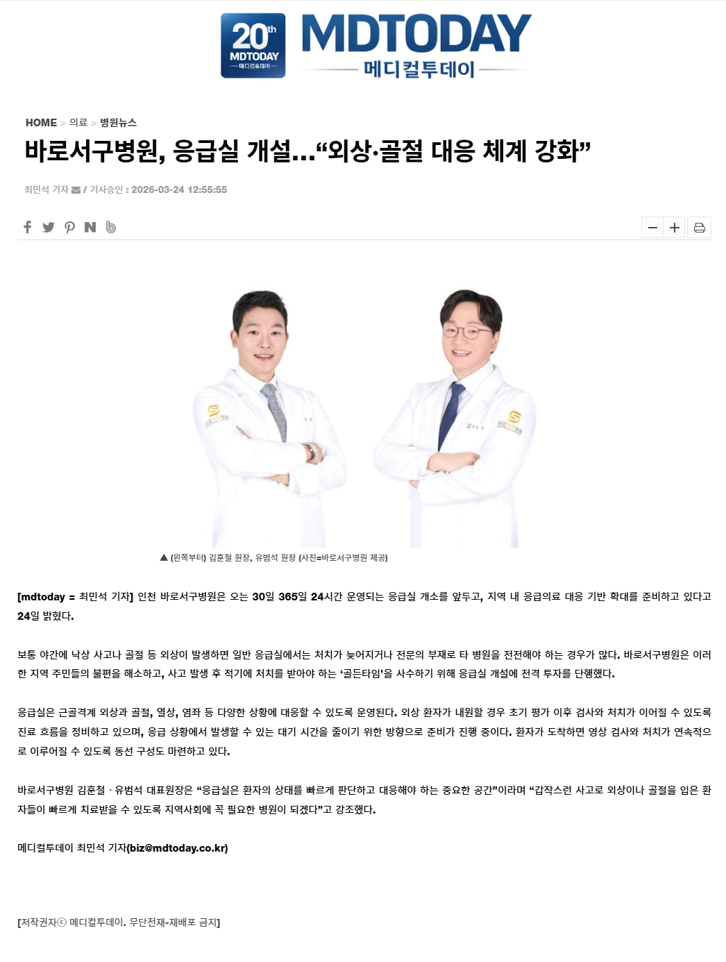 [¸ÞµðÄÃÅõµ¥ÀÌ] ¹Ù·Î¼±¸º´¿ø, ÀÀ±Þ½Ç °³¼³¡¦¡°¿Ü»ó¡¤°ñÀý ´ëÀÀ ü°è °È¡±